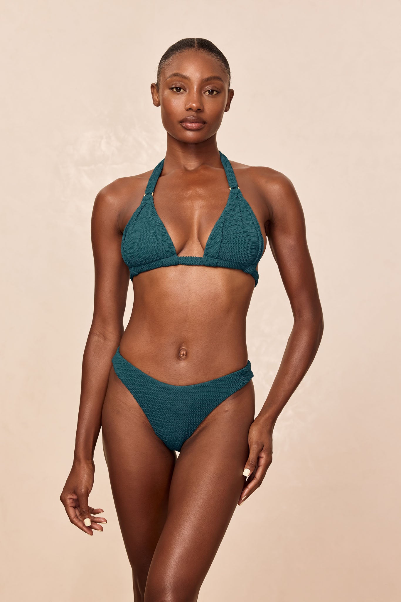 If you match any of our beachwear with this style please keep in mind that the fabric can offer a slightly different shade in our swimwear and beachwear, therefore an exact color match cannot be guaranteed.